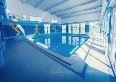 Houve, ainda, a preocupação de encontrar soluções e combinações cromáticas bonitas, agradáveis e estimulantes. O sistema de aquecimento de águas, da piscina e do edifício, utiliza energias renováveis, não poluentes e economizadoras de recursos energéticos.