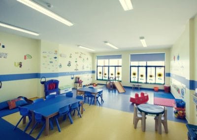 As salas são amplas, possuem materiais, a nível de piso, apropriados aos requisitos dos diferentes grupos etários e todas dispõem de janelas grandes e rasgadas, que proporcionam uma ótima iluminação natural.